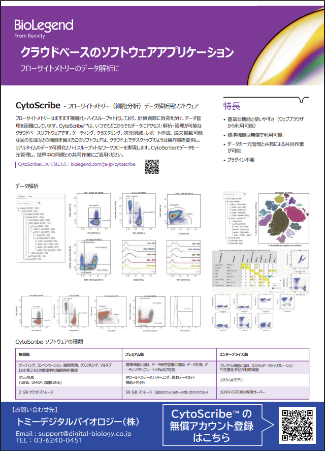 BioLegend クラウドベースのFCMデータ解析ソフトCytoScribe 製品概要 はこちら